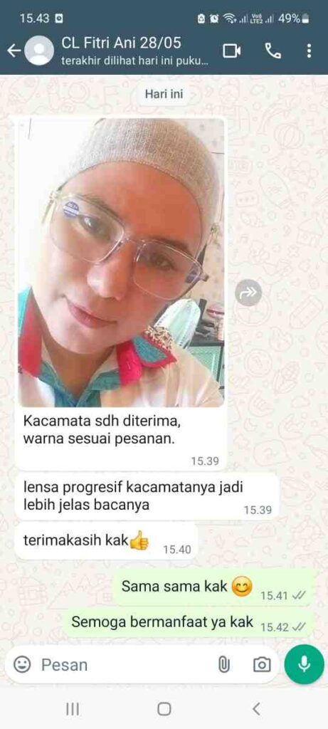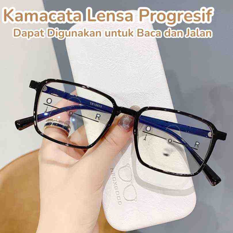 Kacamata multifokal modern tanpa garis pemisah yang memungkinkan penglihatan jernih dari jarak jauh, menengah, hingga dekat dalam satu lensa.
